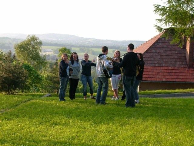 z tyłu dom pielgrzyma, jak widać naszej młodzieży przypadło do gustu...
